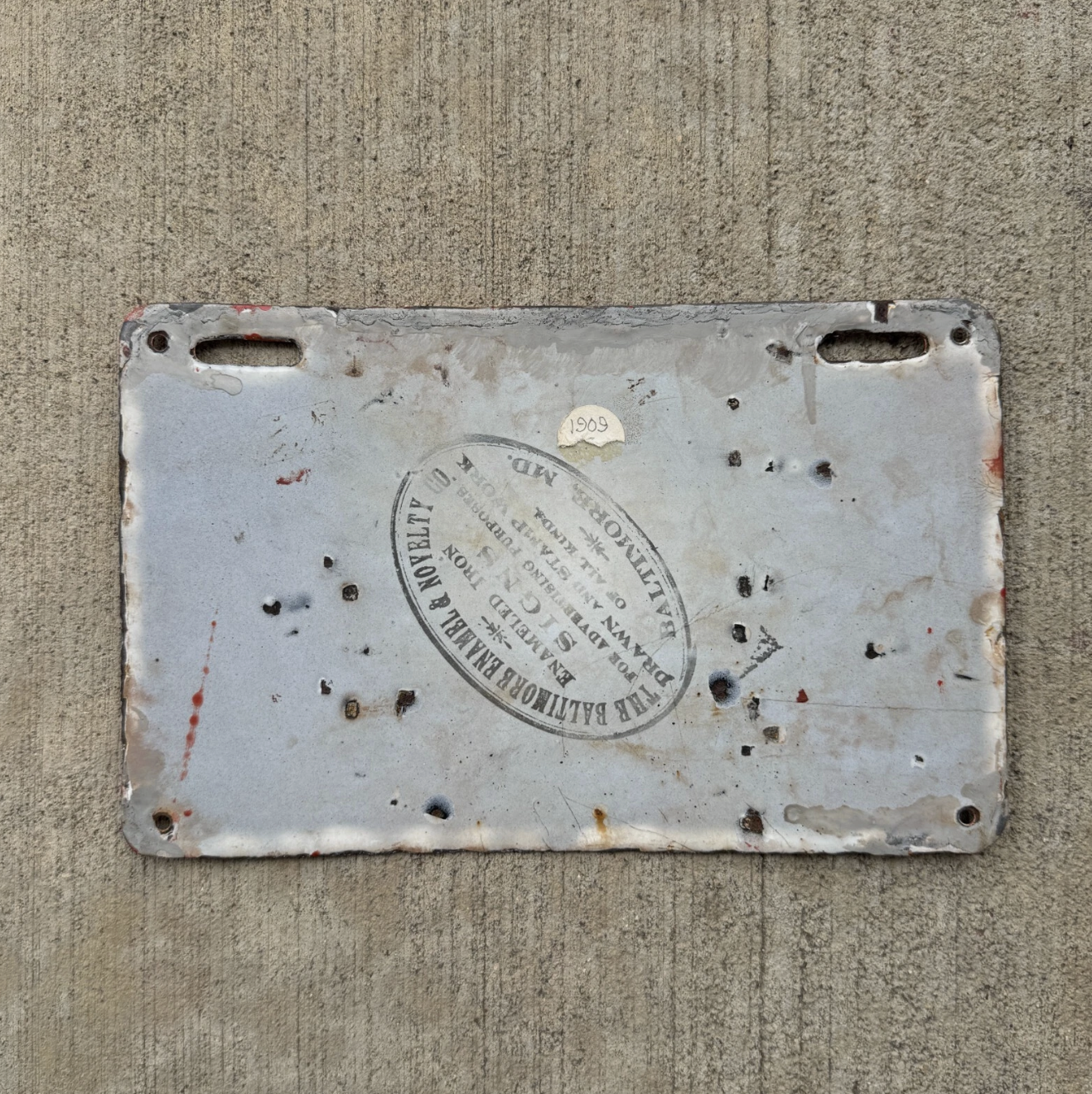 1909 Maine Porcelain License Plate Auto Tag First Issue 5th Year 1905 to 1911 4075